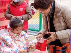 课堂的氛围在墨香中达到高潮。工会邀请了杭州退休干部职工大学的老师们现场铺开红纸,挥毫泼墨,将祝福凝于笔端。“‘菜鲜人暖烟火旺,市睦邻亲日子甜’——这副送给您!”老师将春联递给一位蔬菜摊主。欢声笑语与翰墨清香交织,让这场思政课更添温暖年味与真挚情谊。